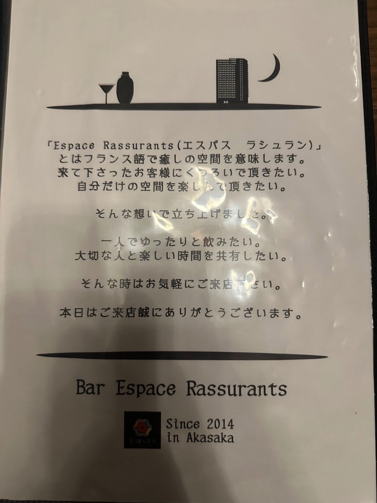 📍【本日のご案内】赤坂の隠れ家バー – バーエスパスラシュラン 🍷