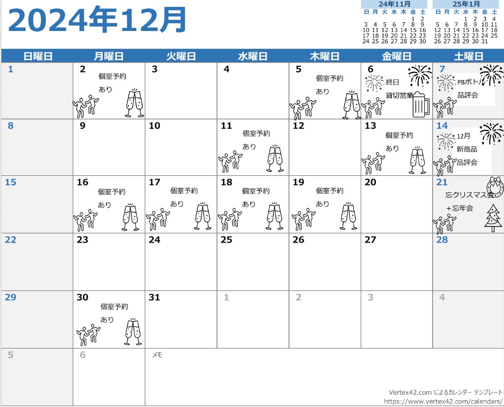 12月の予約予定表