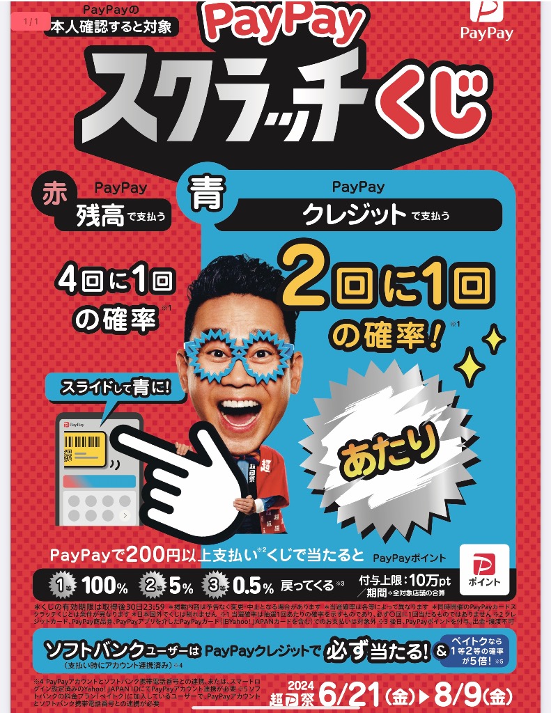 今週から始まるPayPayスクラッチくじ